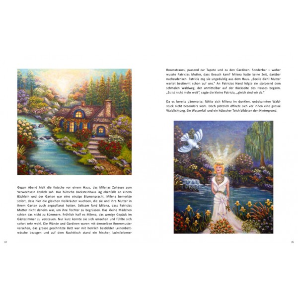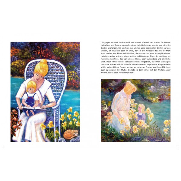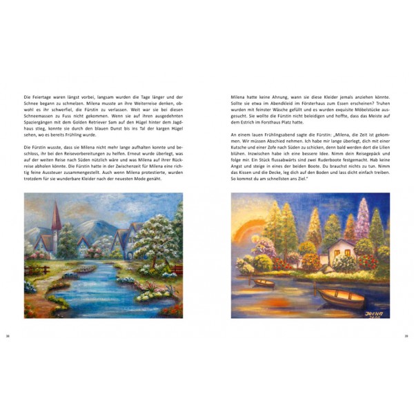Als ich vor mehr als zehn Jahren in den USA wieder zu malen begann, wurde ich durch eine Nachbarin, die bereits eine erfolgreiche, lokale Künstlerin war, in eine kleine Kunstakademie aufgenommen. Nach dem dritten Bild, das ich dort gemalt hatte, wurde ich von unserem Lehrer gelobt: „Now you are one of us!“ Am Anfang inspirierten mich Money, Disney und Kinkade. Nach kurzer Zeit fand ich meinen eigenen Stil. Ich skizziere nur die wichtigsten Elemente mit Kohle auf die Leinwand, spannende Details ergeben sich dann auf wunderbare Weise beim Malen. Sorgfältig habe ich die Illustrationen für mein Märchenbuch „Milena, die Taube und die weisse Lilie“ aus meinen Werken in eine spannende Geschichte eingefügt.